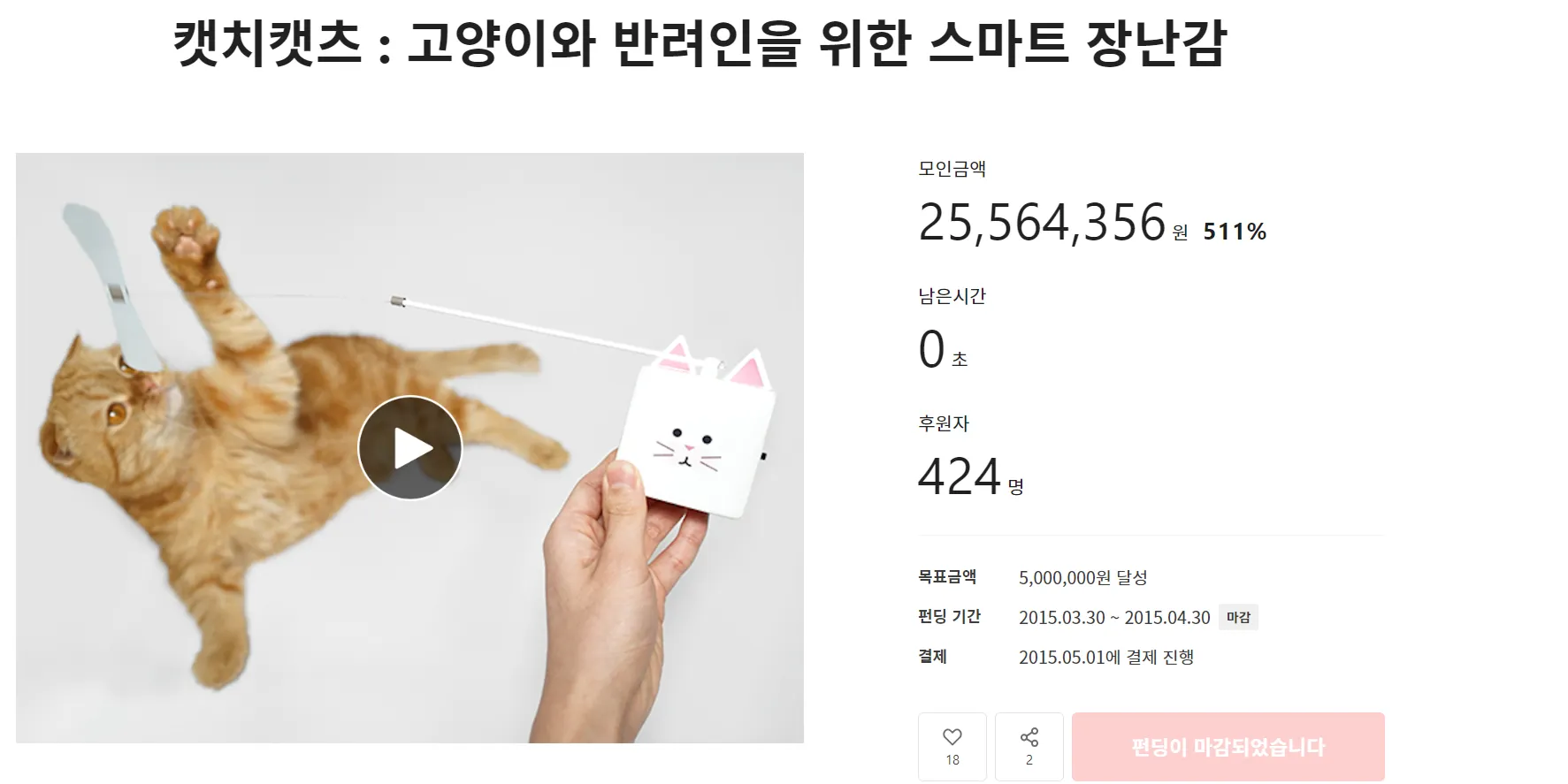 고양이 장난감 펀딩이었던 “캣치캣츠” 펀딩이 가장 기억에 남아요.