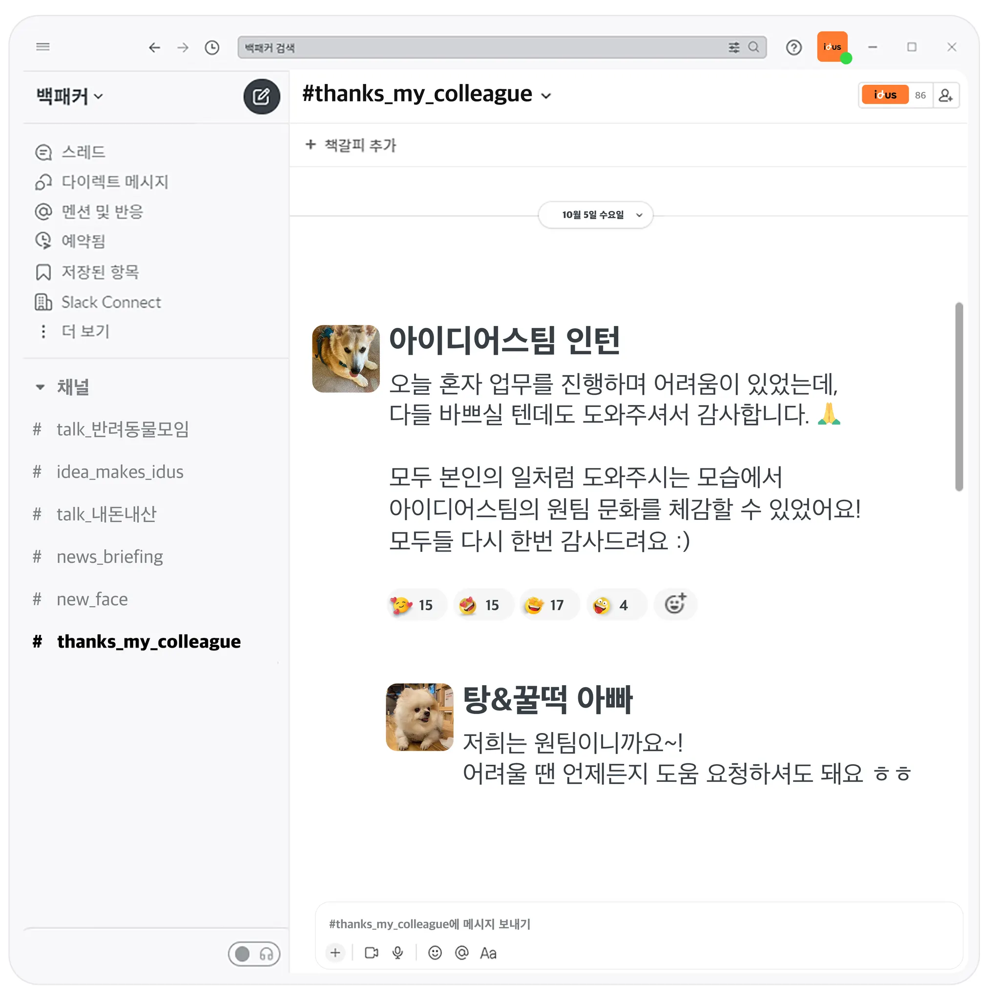 모든 업무가 공개 채널에서 진행돼요.