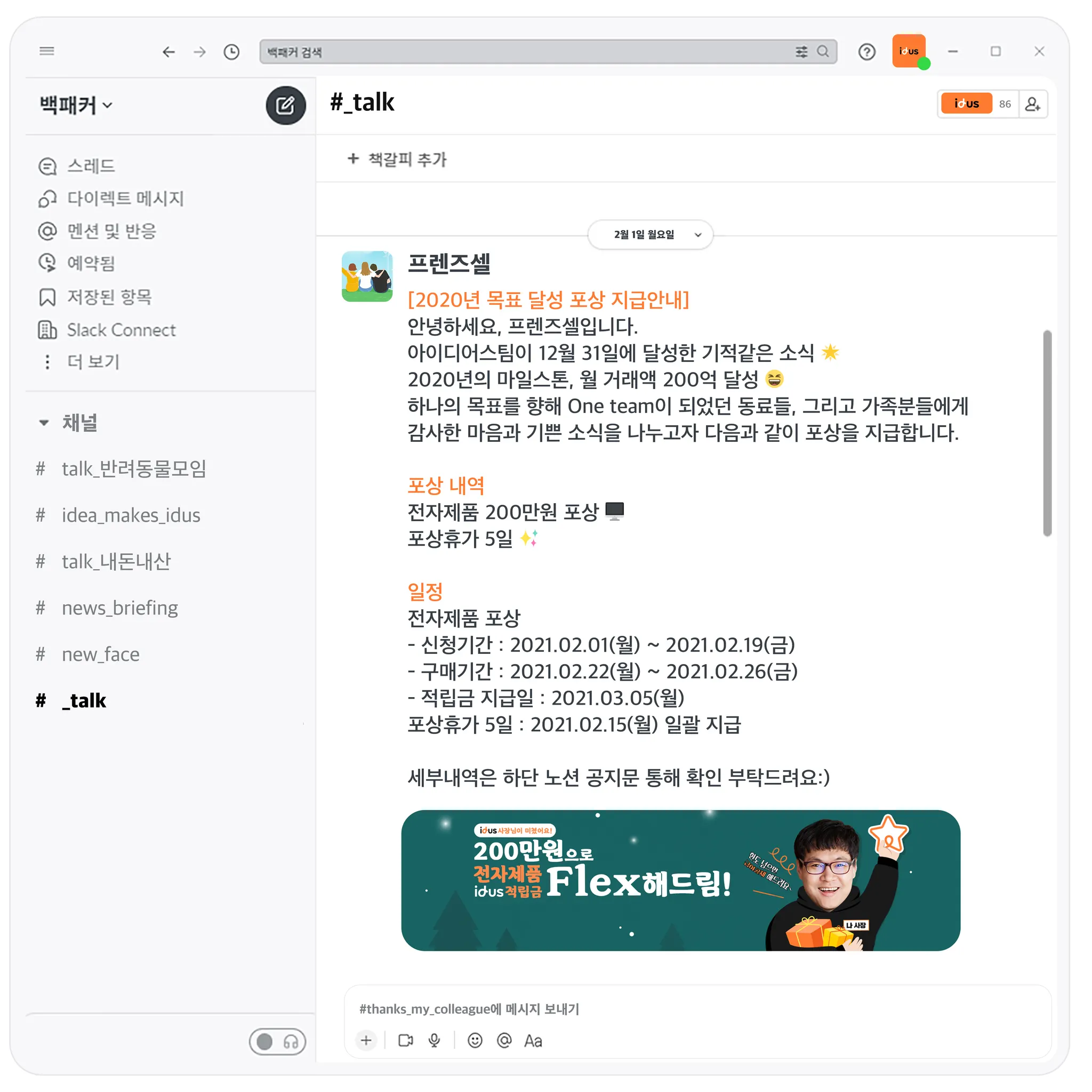 전 구성원에게 200만원 상당의 전자제품과 목표 달성 휴가를 제공했는데요!