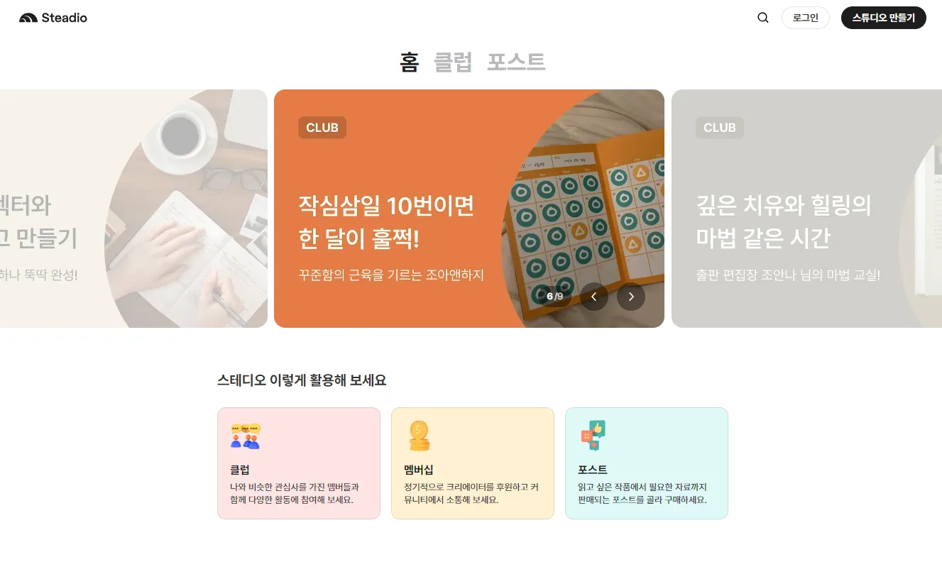 현재 스테디오가 안정 궤도에 오를 수 있도록 다양한 활동을 진행 중인데요.